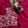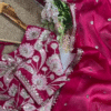 Paired With A Richly Heavy Embroidered Designer Blouse, This Set Is A Complete Festive Ensemble. The Blouse Is Intricately Embellished With Sequins, Thread Work, And Stone Detailing – Giving You A Luxurious, Fashion-Forward Look That’s Sure To Turn Heads.