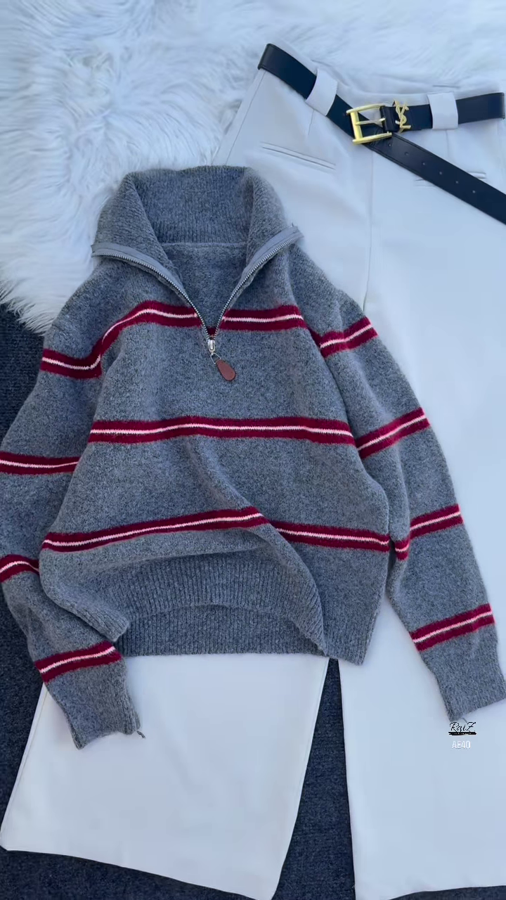 ❤️🔥 Raya Stripe: Zip-Up Sweater & High-Waist Trouser Set