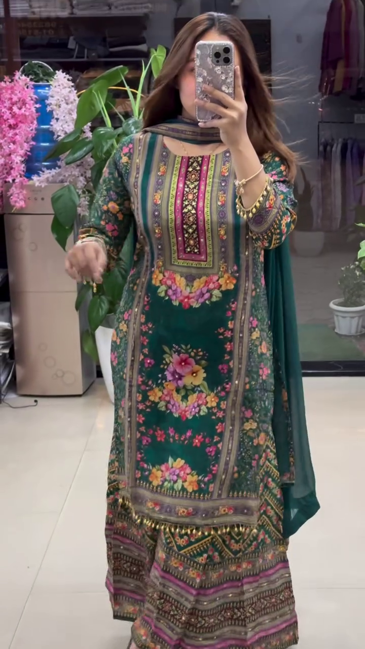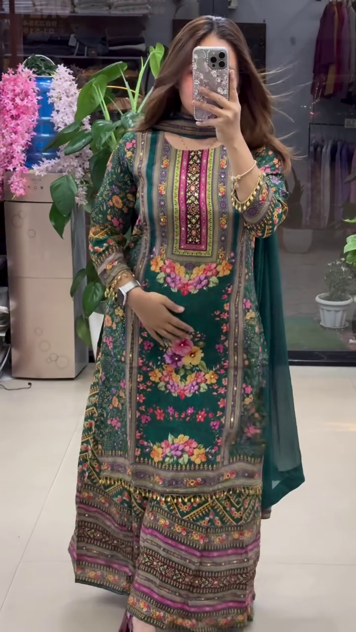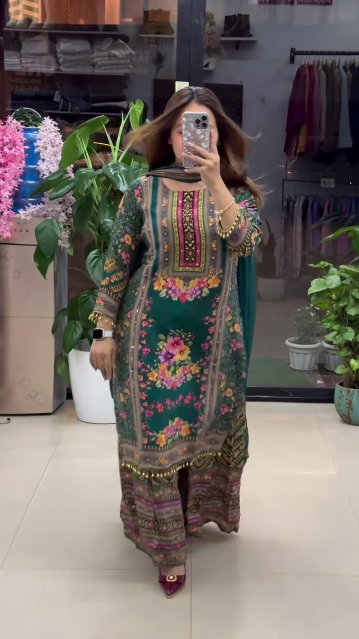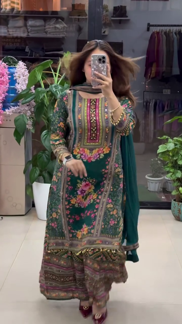 πΏπ Elegant Green Floral Print Suit with Dupatta ππΏ