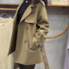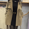 Step into a world where timeless elegance meets modern sophistication with this captivating outfit that blends deep tones and refined textures. The centerpiece is a structured green trench coat, its tailored silhouette effortlessly draping with poise and grace. The double-breasted detail, polished buttons, and waist tie create a bold yet feminine charm, making it the perfect outerwear for both daytime strolls and evening soirΓ©es. πΏβ¨