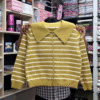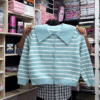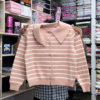 Retro charm meets modern layering in the Collar & Contrast Sweater Collection, a standout series of button-down knits designed for women who love bold details and timeless silhouettes. With its wide pointed collar, horizontal stripes, and warm-toned buttons, each piece delivers boutique elegance with a playful twist.