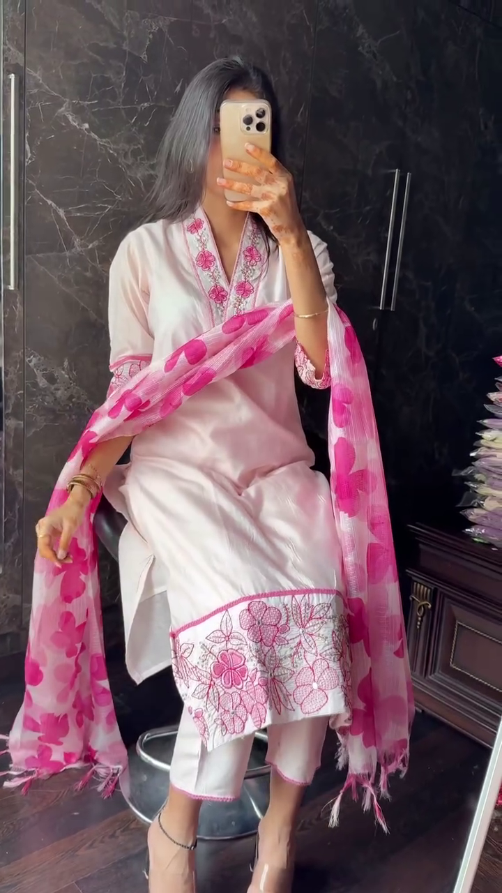 • Fabric: Mul cotton (kurta & pants), Kota Doria (dupatta)