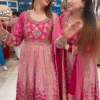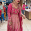 Pink Crepe Tie & die Heavy embroidered & mirror pasting Anarkali Gown with Beautiful Duppata