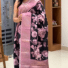 inspired By Pure Mango Silk , Here’s A Semi Silk Fabric A Free Flowing Texture , A Light Weight And Easy To Style .. Comes With Digital Prints With A Contrast Border Having A Zari Peacock Motiffs , Comes With The Contrast Blouse !